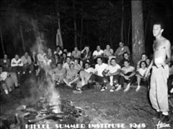 Packed with photos, this 1945 Hillel brochure (PDF file) assesses Hillel’s accomplishments and future objectives. It notes that Hillel “operates on the principle that the patterns of Jewish life are important in the composite of western civilization, and that the university is enriched when it supplements the resources of the campus with the best in the Jewish tradition.”
