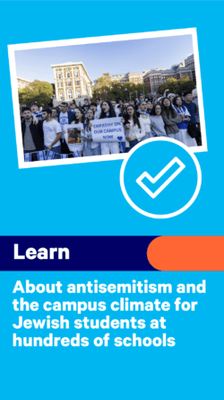 Since the attack on Israel on October 7, antisemitism has risen to historically high levels in the U.S. and around the world — and college campuses have not been immune from this surge in hate. With antisemitism on the minds of so many in the Jewish community, we want to ensure that Jewish parents and families have the information they need about what antisemitism and Jewish life on campus are truly like right now.