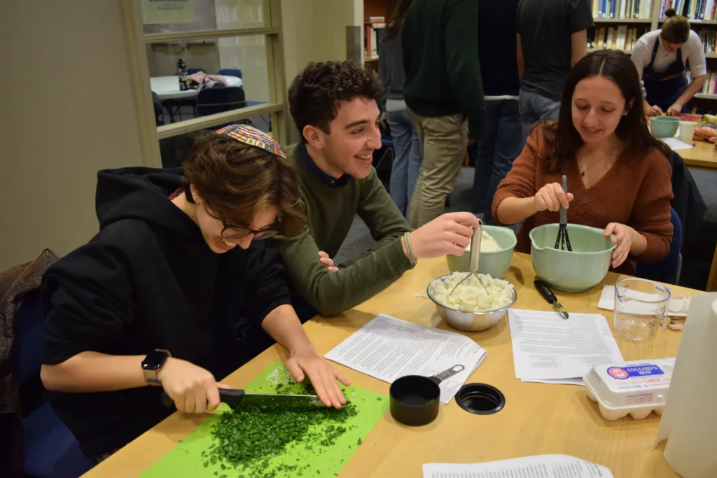 Jewish students across Penn’s campus participated in a fun, hands-on Hanukkah celebration where they prepared and enjoyed three different non-Ashkenazi dishes and learned about the history and impact of Jewish foods from around the world.