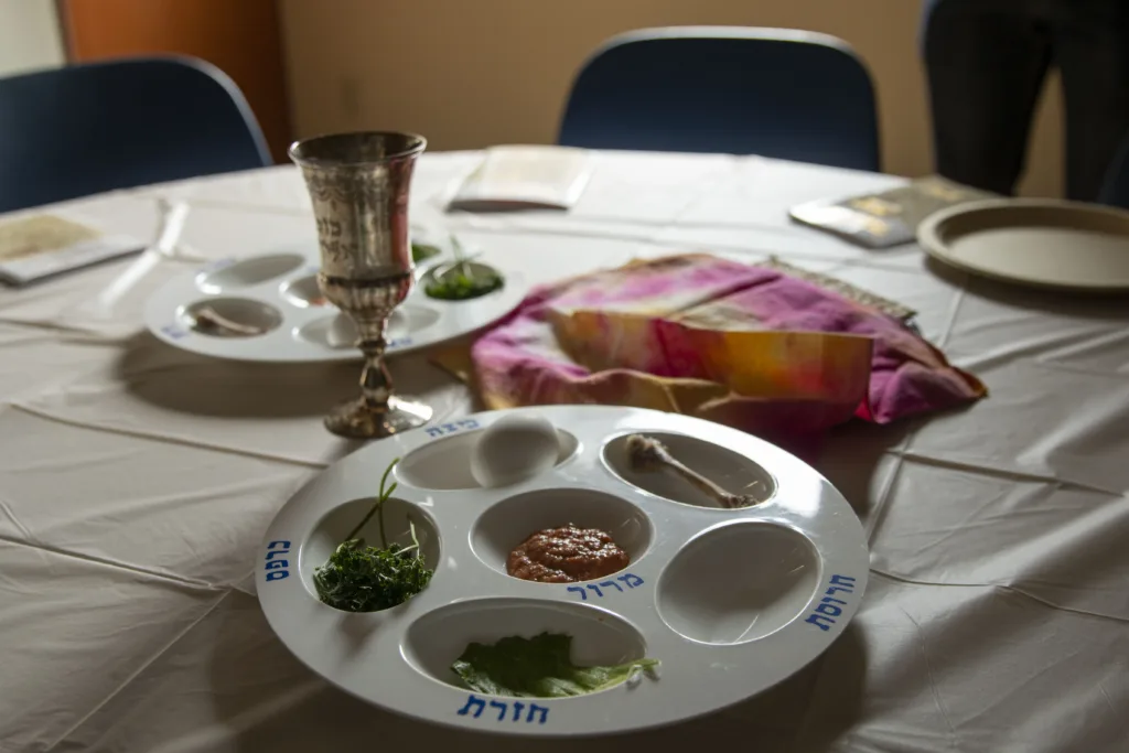 The Seder plate is a visual representation of the Israelites’ enslavement and liberation from Egypt. It has special spaces to hold symbolic foods that each tell different parts of the Passover story.
